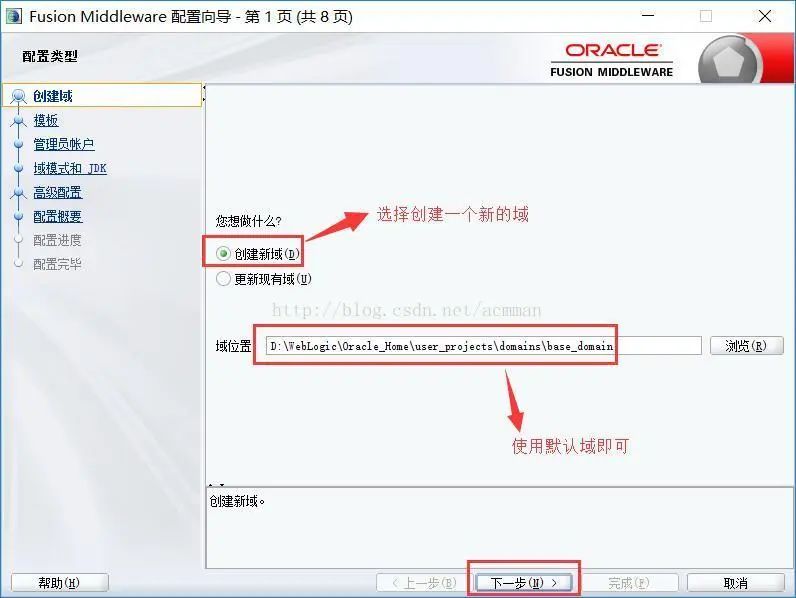 点击完成,WebLogic就安装完毕了。接下来会弹出WebLogic的配置界面。