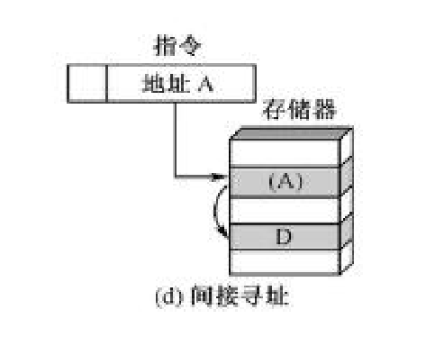 间接地址 EA=(A),有效地址 EA 由形式地址 A 间接给出。指令操作数项指示的地址中的内容是操作数的地址。