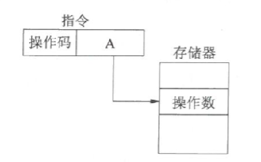 直接寻址 EA=A,有效地址 EA 由形式地址 A 直接给出即操作数项给出内存地址编号。