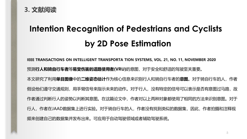 论文阅读 Intention Recognition of Pedestrians and Cyclists by 2D Pose Estimation 关于行人和骑自行车者过马路的意图理解的一篇论文分享