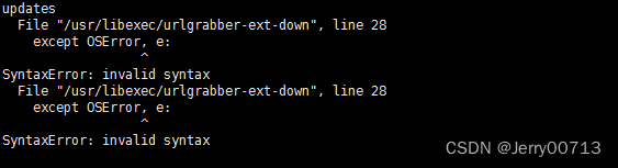 vi /usr/libexec/urlgrabber-ext-down 修改报错文件,将头行"#!/usr/bin/python" 改为 "#!/usr/bin/python2"即可