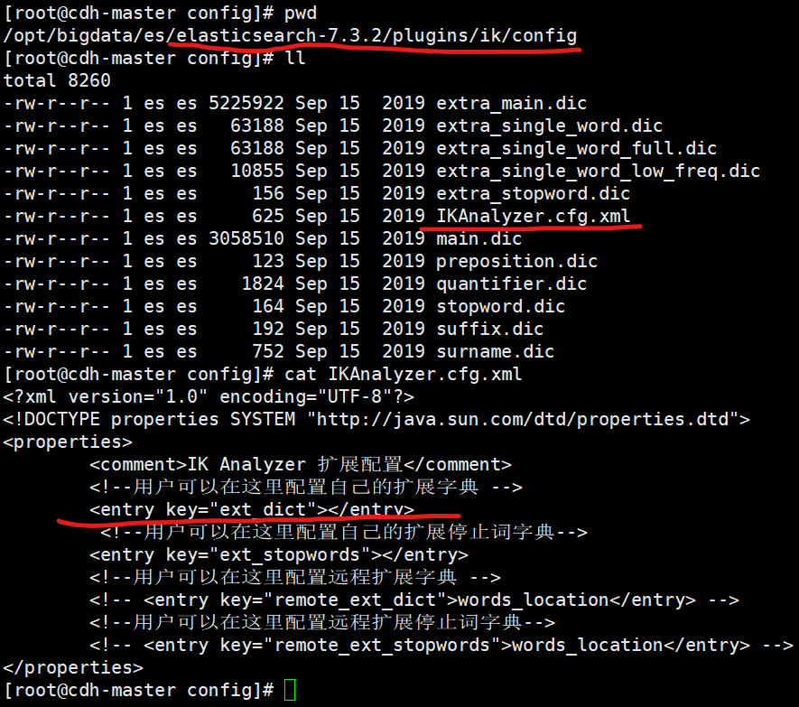 移动到 es 的 plugins/ik 目录后解压