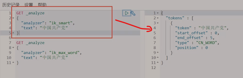 四、ik 分词器默认两种分词器:ik_smart:最少切分 和 ik_max_word:最细粒度切分(穷尽所有可能)