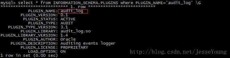mysql> INSTALL PLUGIN audit_log SONAME 'audit_log.so';