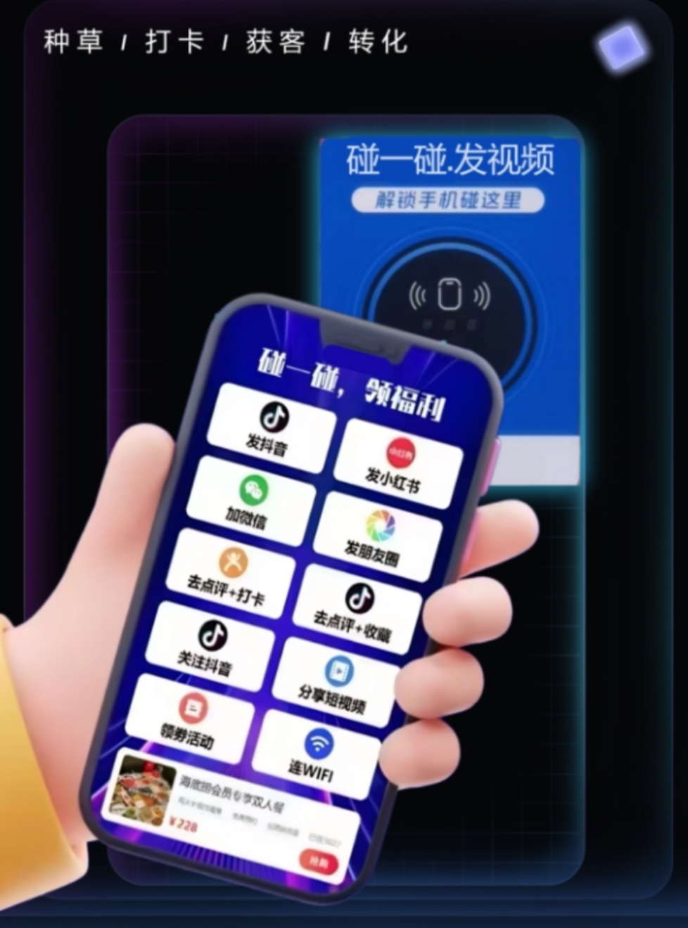 2.多平台支持:NFC技术的应用使得碰一碰发视频技术可以兼容多个短视频平台,如抖音、快手和视频号等。
