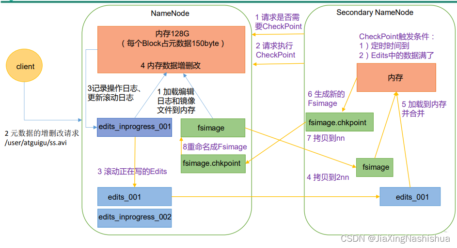 (4)NameNode在内存中对元数据进行增删改。