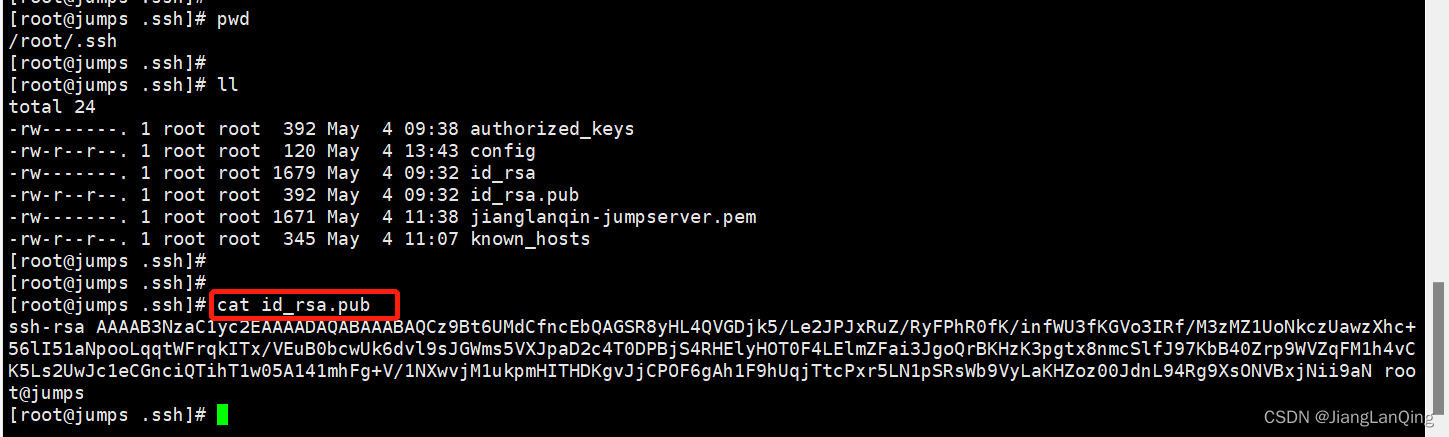 (2)cat .ssh/id_rsa.pub。 (查询终端的公钥)