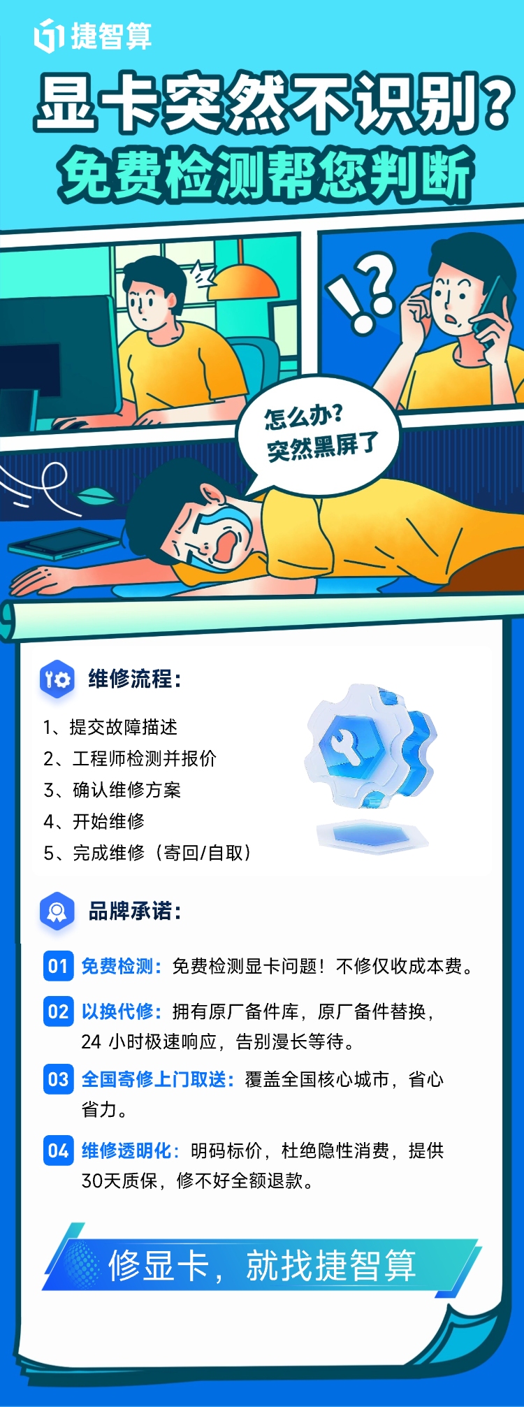 当 GPU 出现故障问题,无需焦虑无措。选择捷智算 GPU 维修室,专业团队、精湛技术、贴心服务为您排忧解难,让每一颗 GPU 重获强劲算力,为您的业务发展保驾护航。