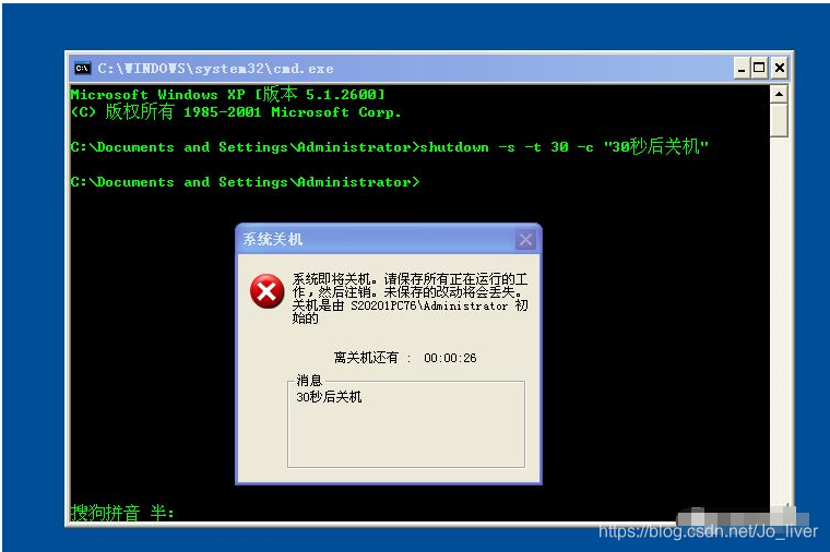定时关机命令符:shutdown -s -t 30 (s就是关机命令,t 30是关机时间 中间有空格)