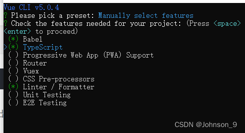 2.用上下键控制位置,空格控制选中,这里只选择了ts,然后继续回车