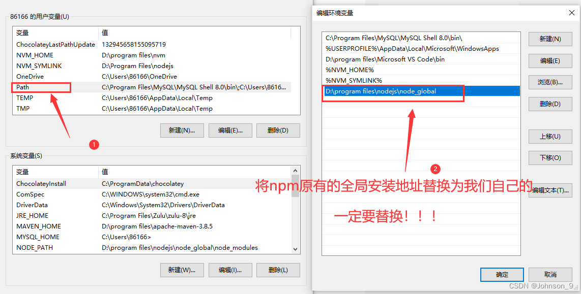 这里一定要注意,一定要替换掉npm原来的全局安装文件地址,不然后面会有大坑!!!!!
