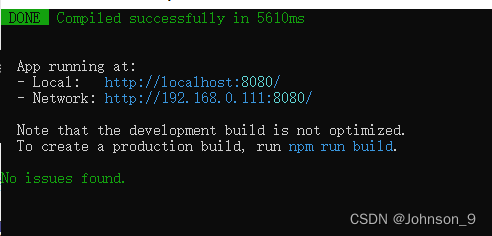 再执行:npm run dev 就运行成功了,进入浏览器输入网址即可访问。