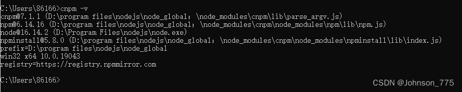 全局安装淘宝加速器:npm install cnpm -g ——> 安装完成后输入:cnpm -v 检查版本(是否安装成功)