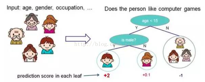 决策树是机器学习中最接近人类思考问题的过程的一种算法,通过若干个节点,对特征进行提问并分类(可以是二分类也可以使多分类),直至最后生成叶节点(也就是只剩下一种属性),下面这张图形象表示了决策树的过程: