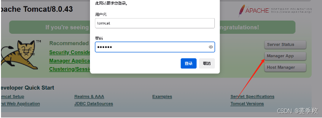 后台弱口令部署war包 漏洞复现 1.搭建好环境打开页面---点击右方的manager app 默认账号密码为tomcat。3.将你生成的jsp木马压缩为zip格式并将后缀名改为war。5.点击完后在后面加lkj.jsp,访问成功证明注入成功。4.提交此war压缩包然后在目录中点击。2.登录完成后滑到下面点击浏览。