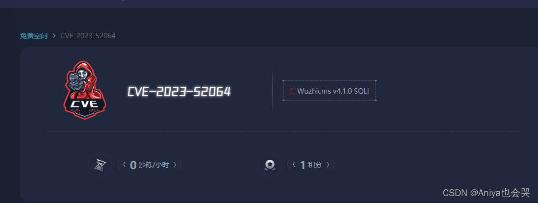 【春秋云镜】CVE-2023-52064标靶Wp 因为这个是WuZhiCMS,然后这里刚好我的博客里面介绍了有一个Day,不知道的小伙半,可以看看我的漏洞复现的文章,里面有个五指CMS的文章哦。这里抓包 把GET数据包 用SQLmap跑,这里注意下,GET数据包里,keyword=1* 其余删掉 后面的。然后直接上Day,有day就打day奥,打出来数据库为wuzhicms,不用我多说了吧直接flag展示奥。弱密码自己猜测奥,锻炼你自己,可以通过信息收集查询奥,小伙伴们加油!输入来篡改SQL语句的结构,执行恶意的SQL命令。这里直接弱密码,尝试进去后台。