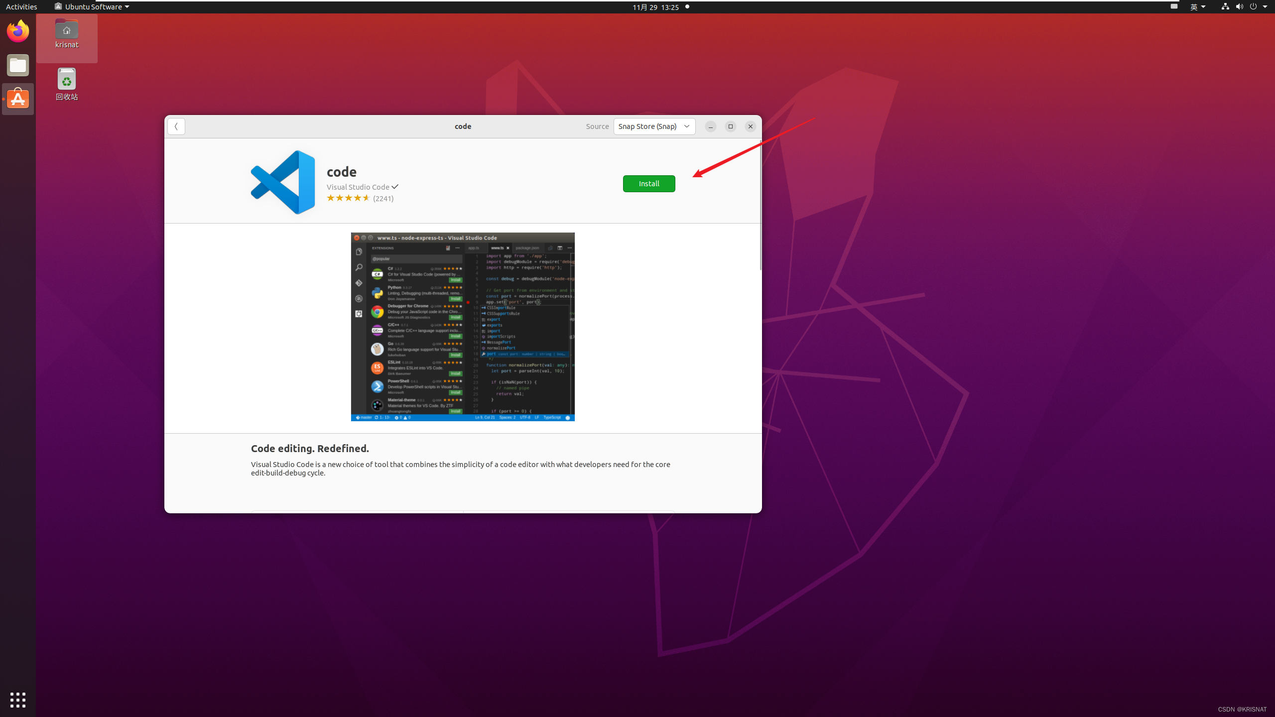 直接在Ubuntu Software中搜索visual studio code安装即可。