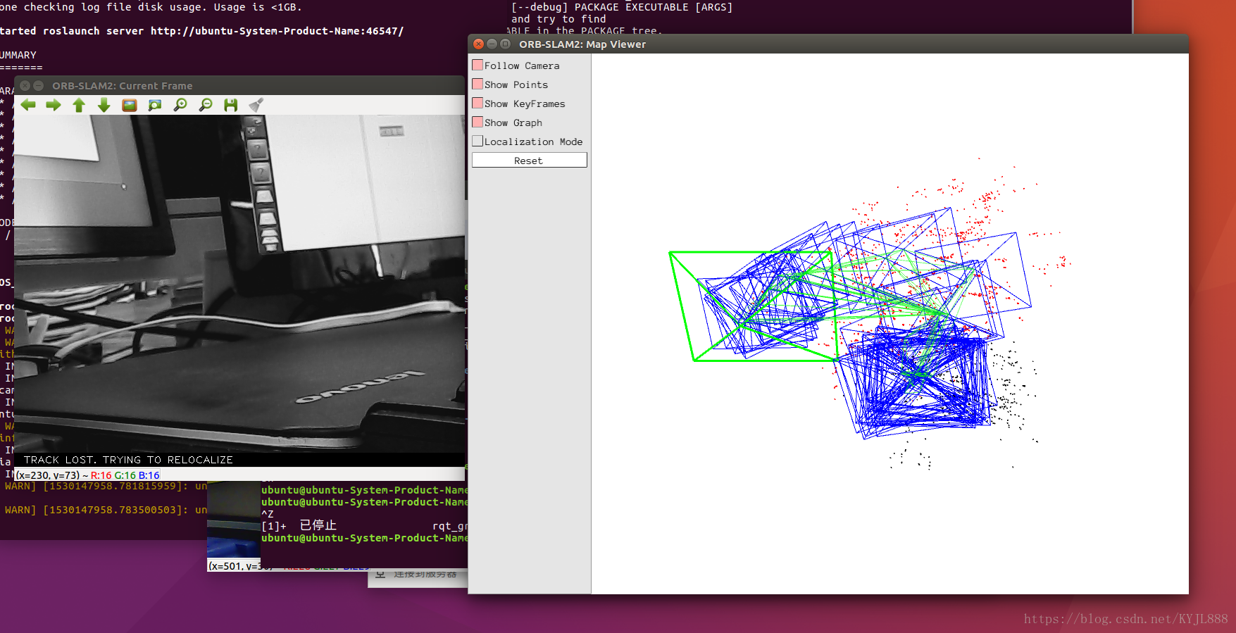 mkdir build cd build cmake .. -DROS_BUILD_TYPE=Release make -j完成了ROS indigo下ORB-SLAM2的调试,使用的是索尼的PS3摄像机,效果不错。