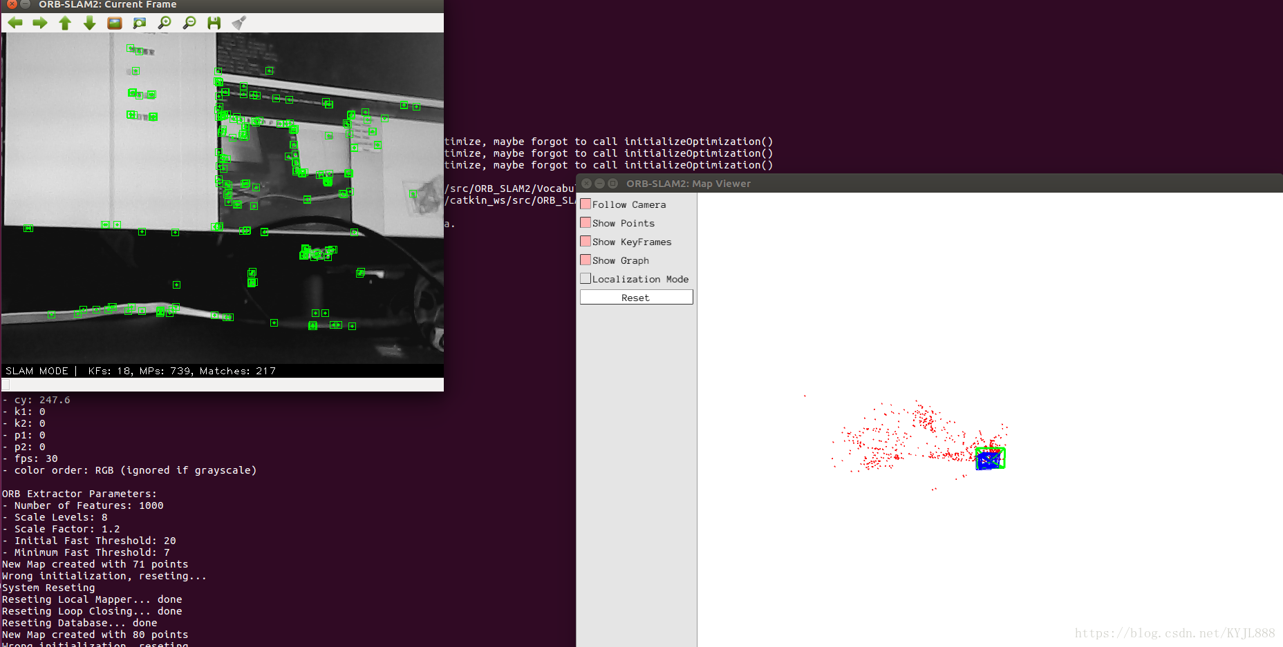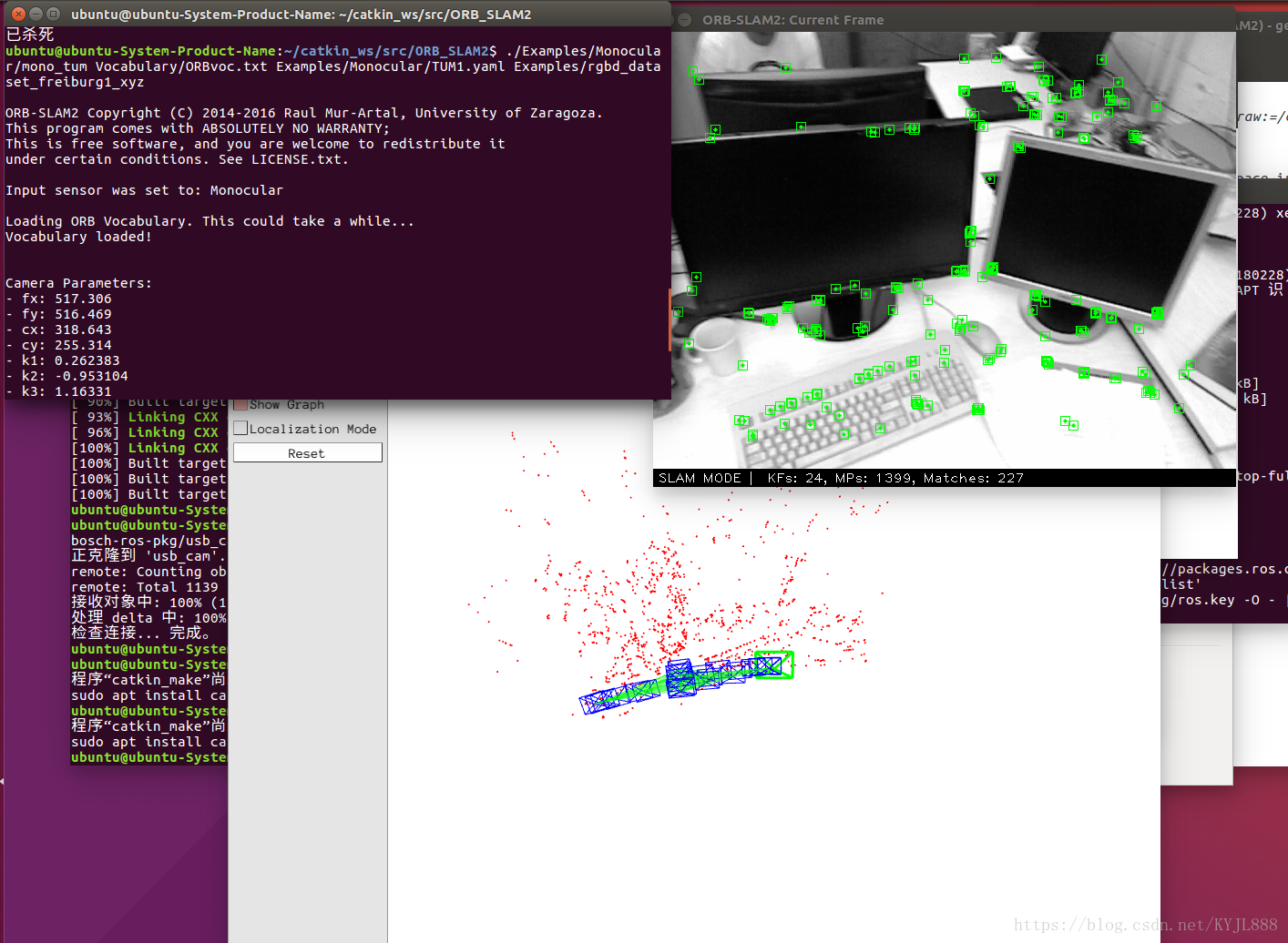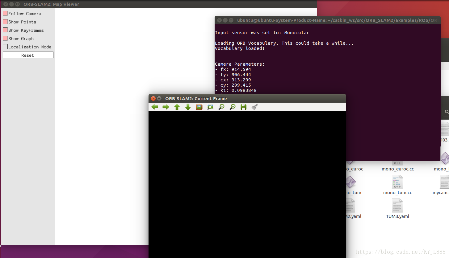(即 rosrun ORB-SLAN2 Mono ORBvoc.txt路径 Asus.yaml路径)