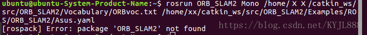 rosrun ORB_SLAM2 Mono /home/xx/catkin_ws/src/ORB_SLAM2/Vocabulary/ORBvoc.txt /home/xx/catkin_ws/src/ORB_SLAM2/Examples/ROS/ORB_SLAM2/Asus.yaml