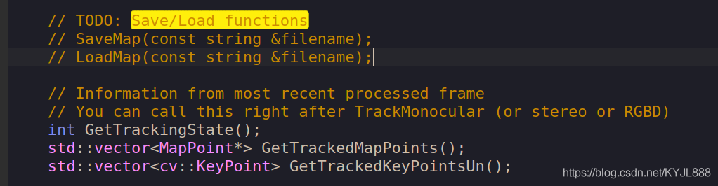 需要明确的是一般SLAM系统对地图的维护均在Map.cc这个函数类中,最终把地图保存成二进制文件,所以现在Map.h中声明几个函数吧: