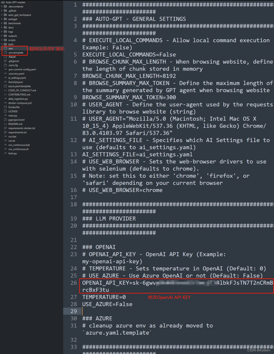 2, 修改参数: ./Auto-GPT-ZH-main/.env.template 修改成 .env, 修改API_KEY;
