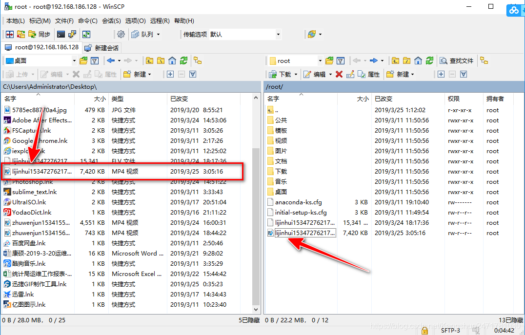 提示:由于我这的sz命令出现了点问题,所以直接用winSCP工具来进行测试