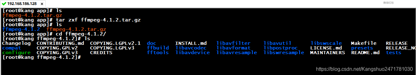 首先去官网:www.ffmpeg.org 下载源码包,这里下载的是最新的ffmpeg-4.1.2.tar.gz软件包