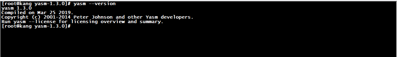 编译安装完成之后,查看yasm版本,说明安装成功:
