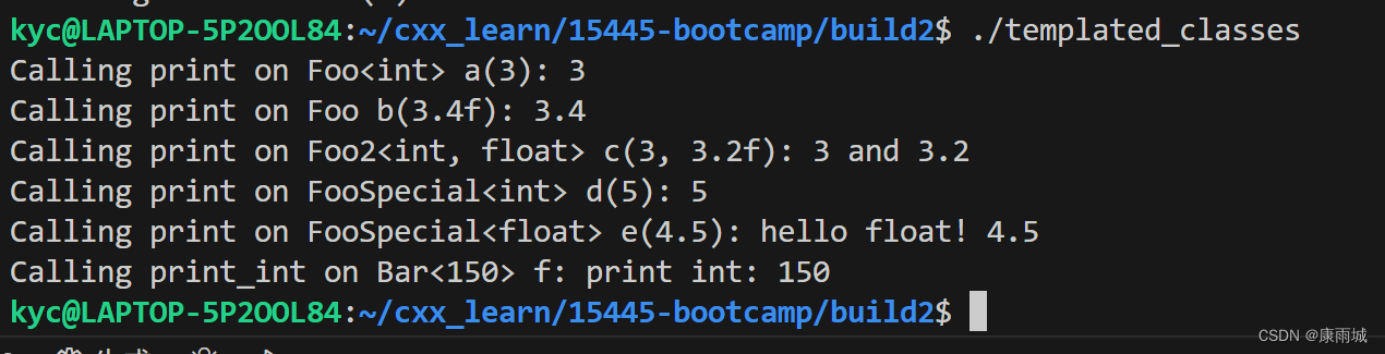 // Second, we construct an object from a templated class with multiple