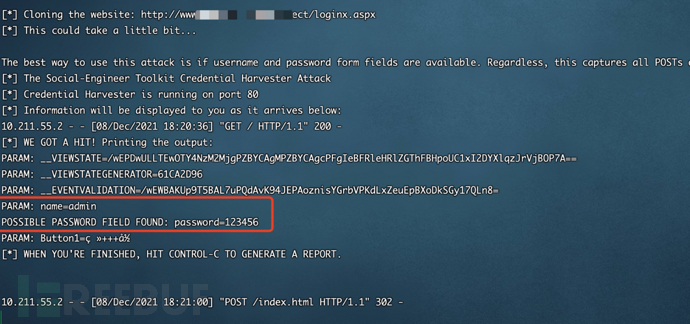 接下来访问kali的IP地址,并且输入账号密码。这里模拟受害者完成登录流程