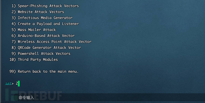 接下来选择第二项Website Attack Vectors (网站攻击载体)