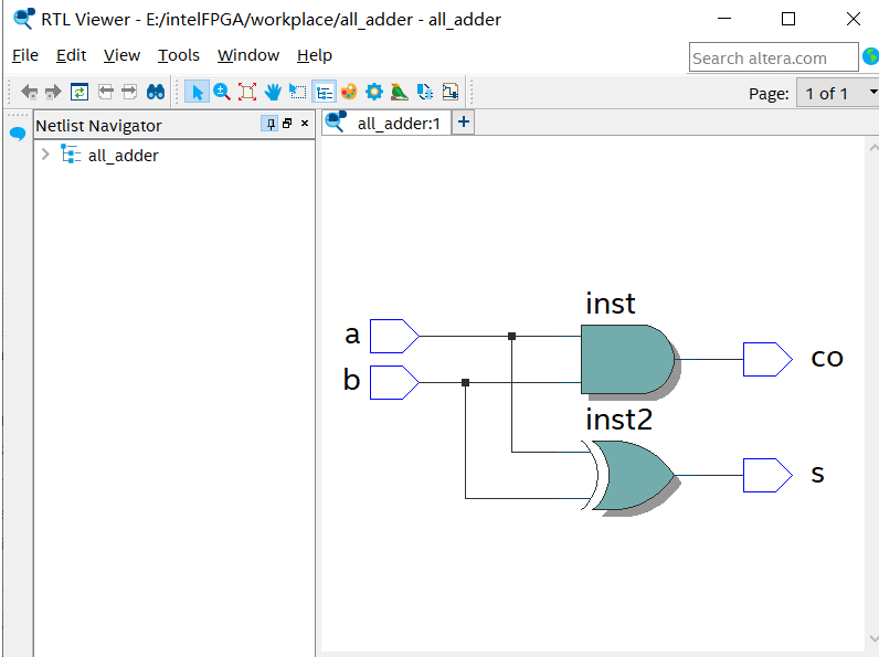 输出原理图实现一位加法器