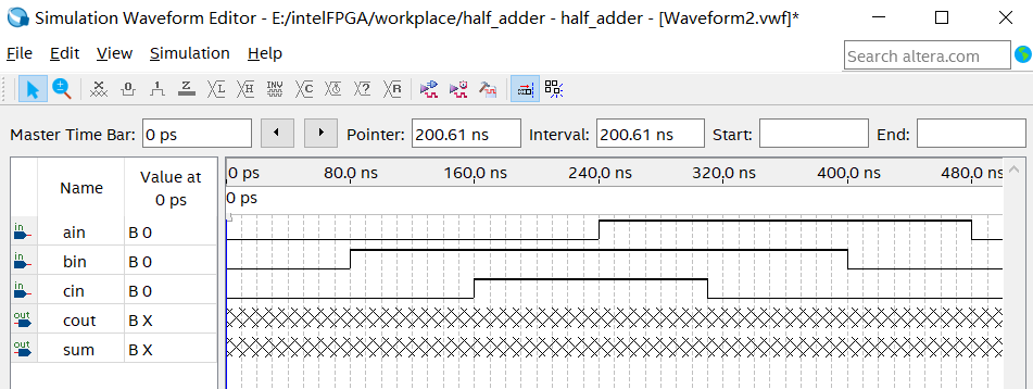 创建一个向量波形文件,选择菜单项File->New->University Program VWF