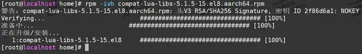执行rpm -ivh compat-lua-libs-5.1.5-15.el8.aarch64.rpm安装