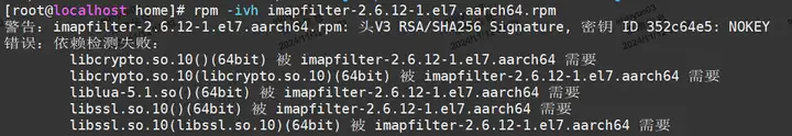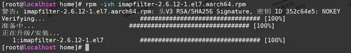 使用rpm -ivh imapfilter-2.6.12-1.el7.aarch64.rpm安装rpm包