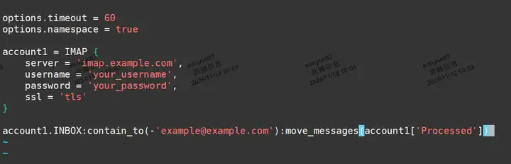 IMAPFilter 是一个邮件过滤实用程序,它通过 Internet 消息访问协议 (IMAP) 连接到远程邮件服务器,并向服务器发送搜索查询,并根据结果处理邮箱。它可以用于删除、复制、移动、标记等操作,处理位于同一或不同邮件服务器上的邮件。IMAPFilter 支持 IMAP 协议的 4rev1 和 4 版本,并使用 Lua 编程语言作为配置和扩展语言。详细见官网https://github.com/lefcha/imapfilter.git。