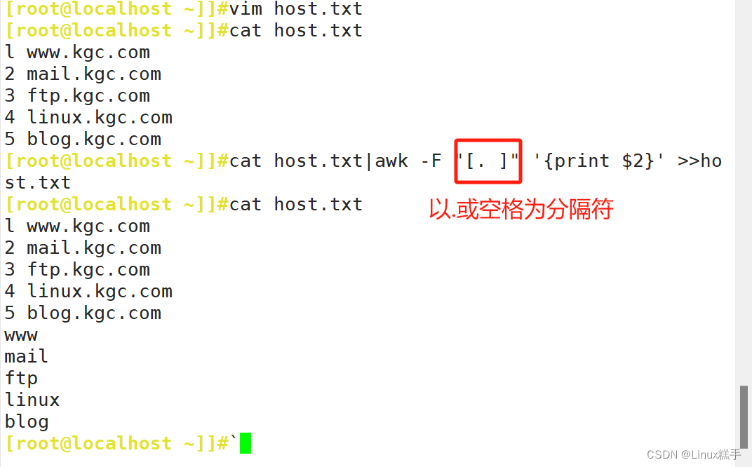 cat host.txt |awk -F "[. ]" '{print $2}' >>host.txt