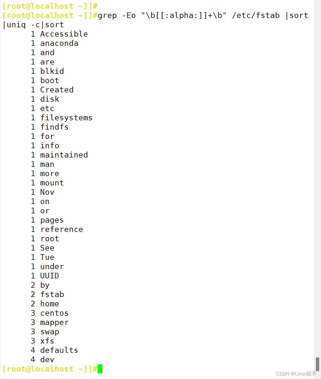 2. 统计/etc/fstab文件中每个单词出现的次数