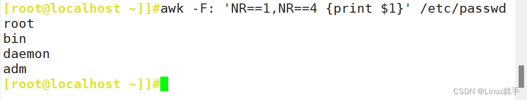 awk -F: 'NR==1,NR==4 {print $1}' /etc/passwd
