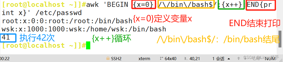 awk 'BEGIN {x=0};/\/bin\/bash$/;{x++};END{print x}' /etc/passwd