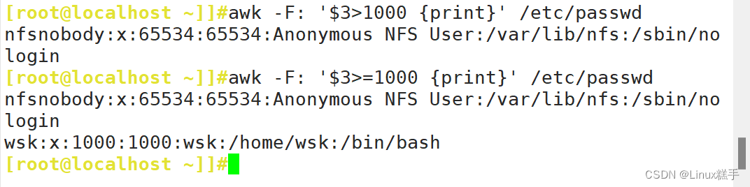 awk [选项] ‘模式条件{操作}’ 文件1 文件2...