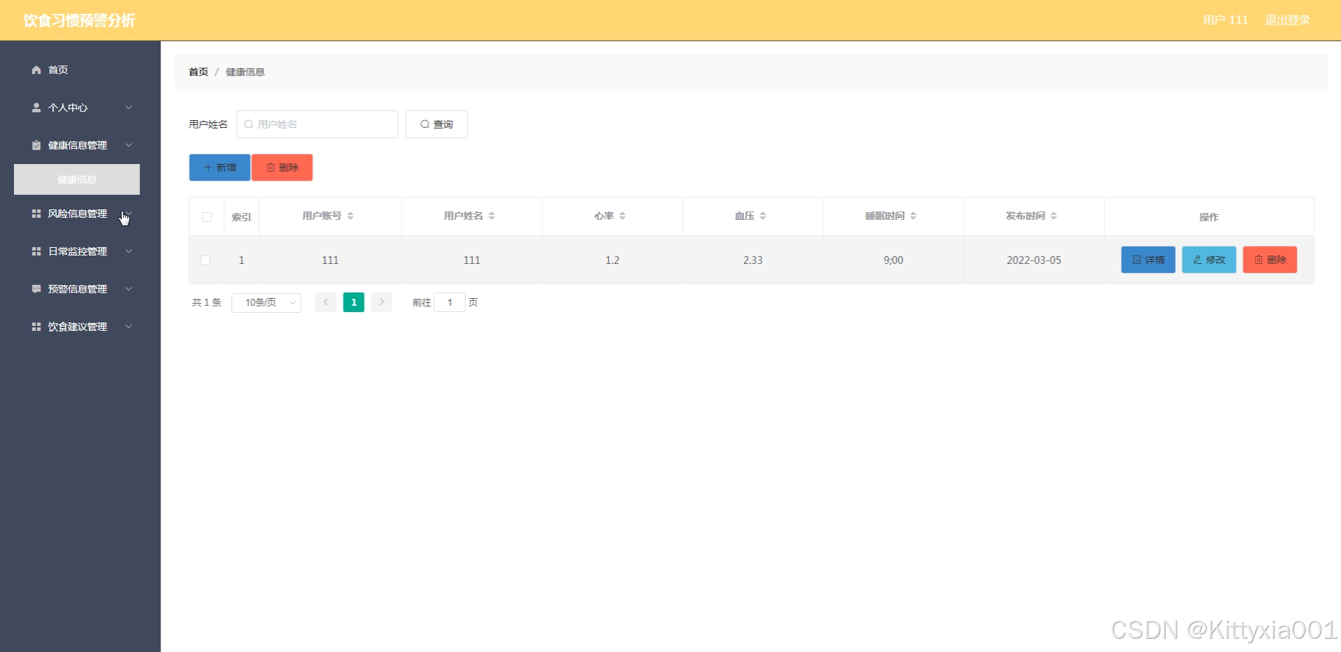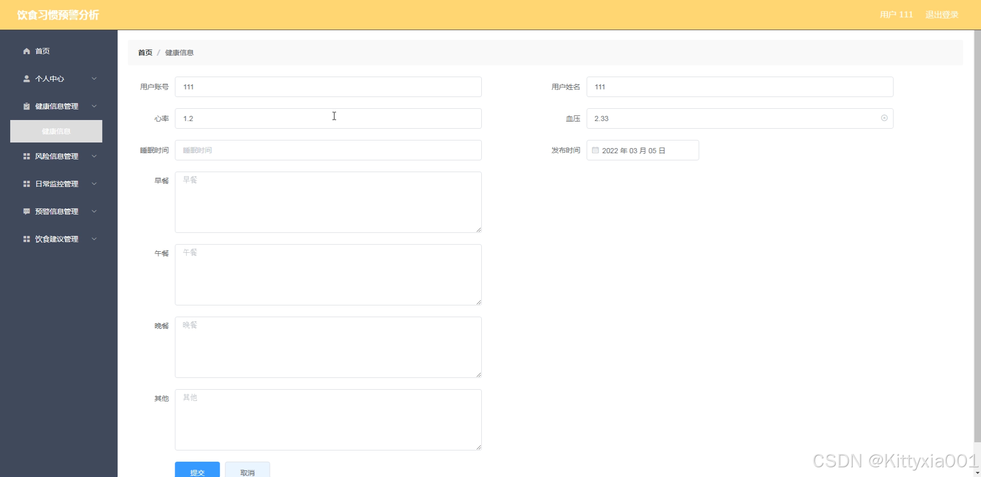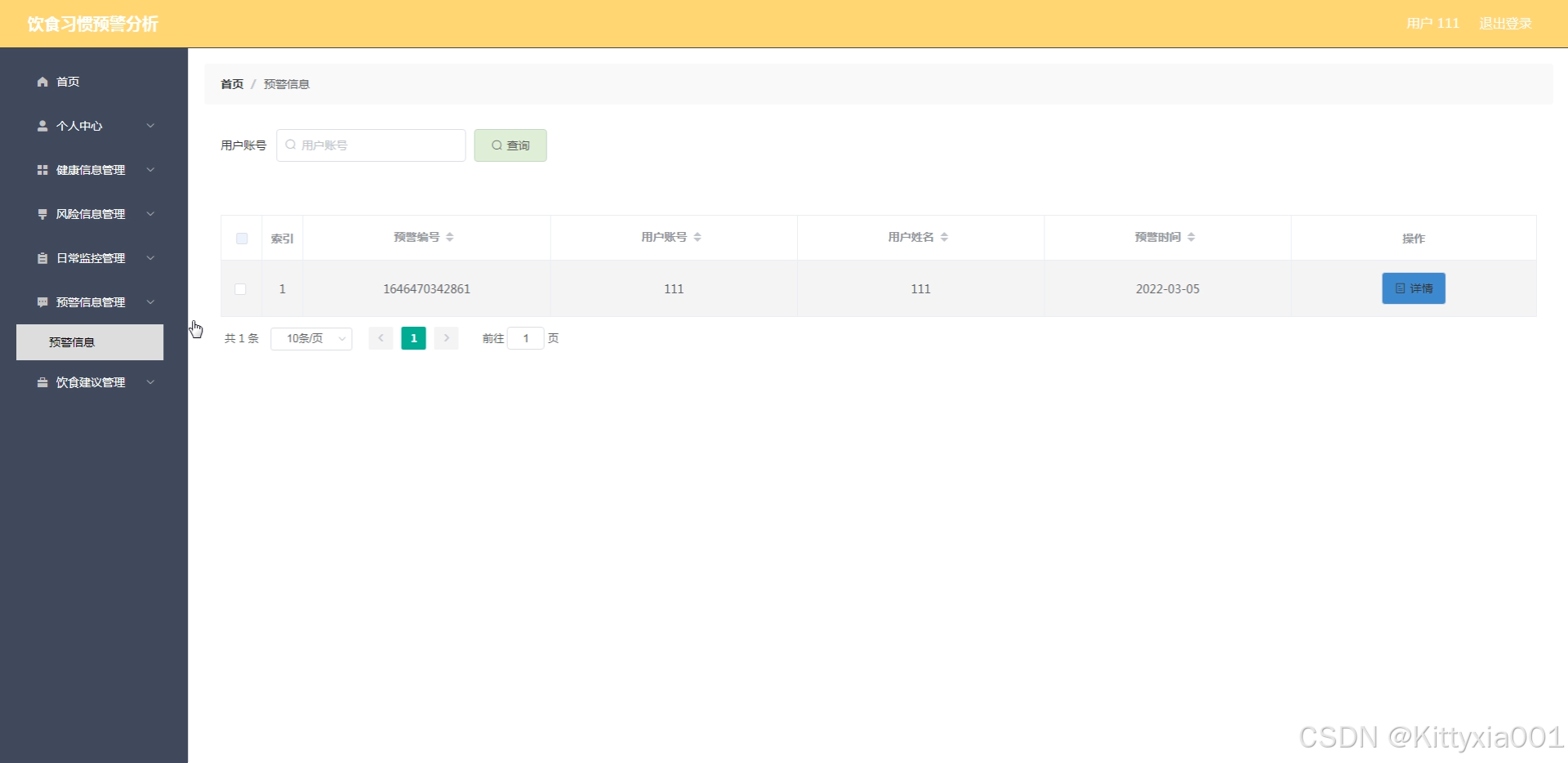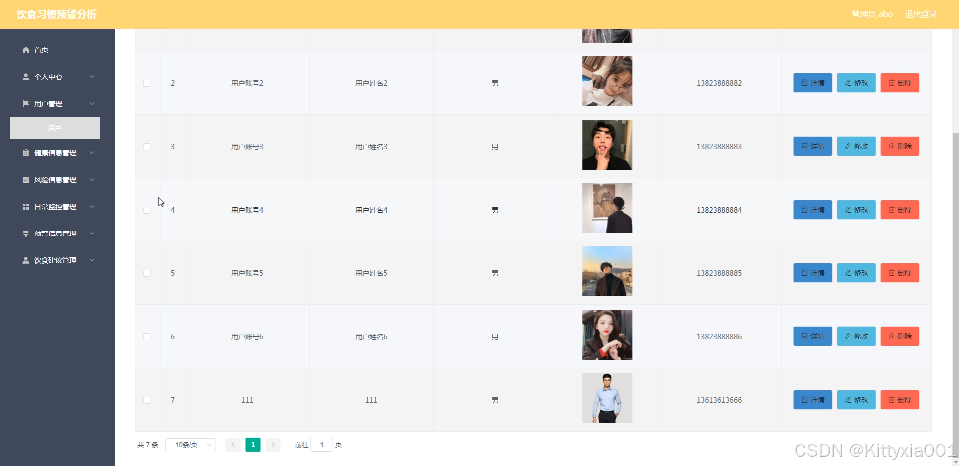 - 设计并实现一个饮食习惯预警分析系统,包括用户信息模块、健康信息分析模块、风险信息识别模块、日常监控模块、预警信息发布模块和饮食建议提供模块。
