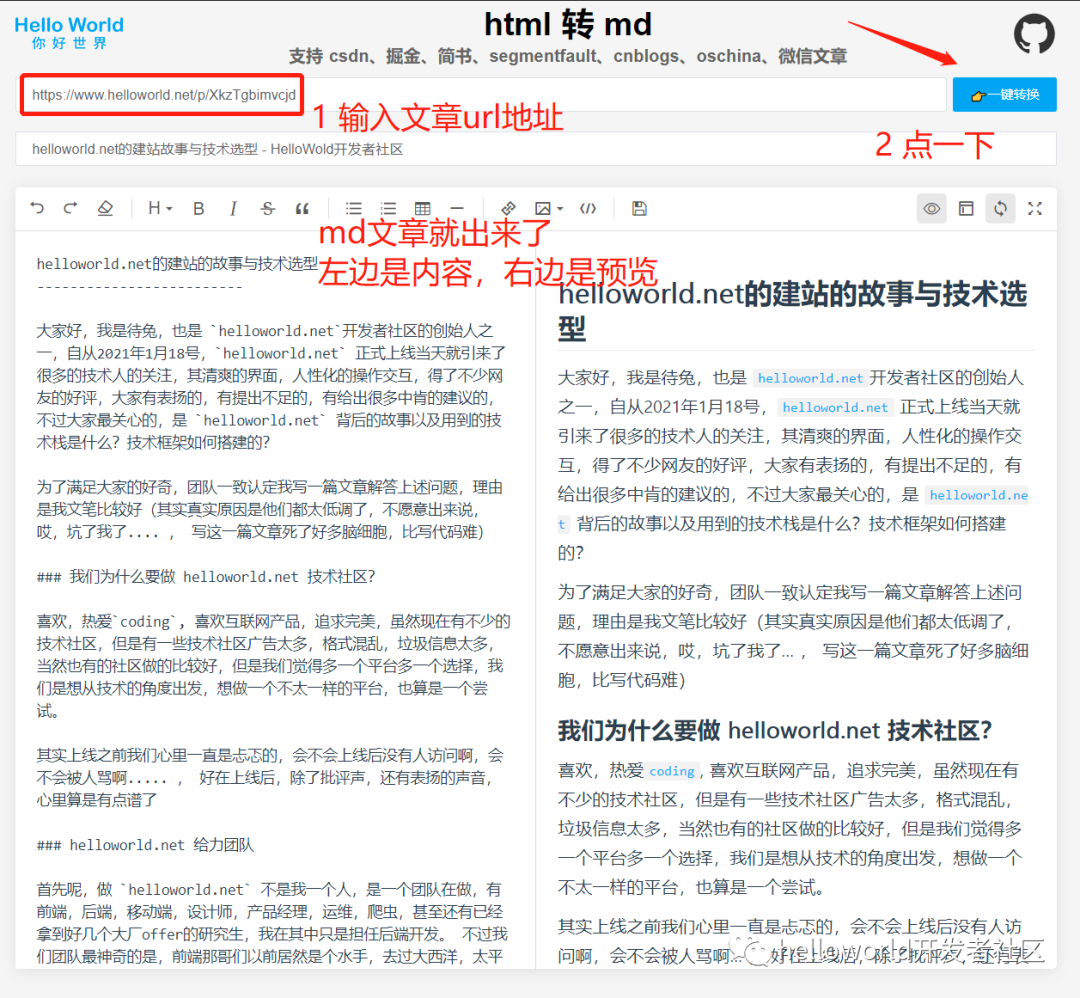 目录, 这样每次在不同技术社区发布文章还是会很麻烦, 所以综上我们开发了一款自动爬取html内容并一键转换为makedown