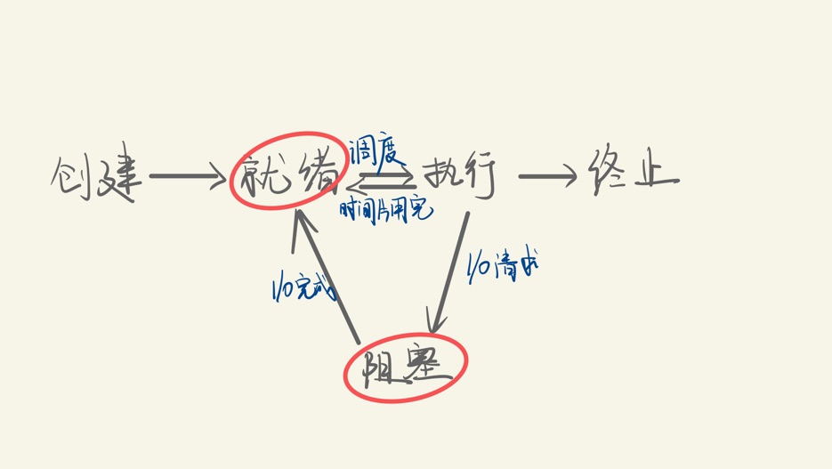 【操作系统】进程的状态 创建,等待分配处理机CPU资源(叫阻塞因为相对CPU来说它很慢,等待除CPU以外的资源,如I/O),终止。创建好的进程放入就绪队列等待资源分配。有专门的阻塞队列(I/O的排队队列)终止删除进程,清空PCB,并将空PCB返还系统。