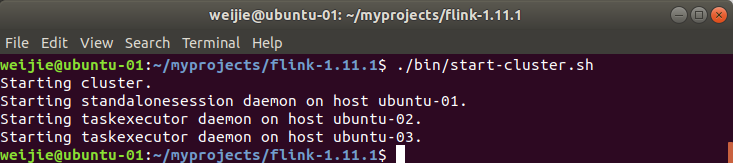 本文利用 3 个节点搭建 Flink 集群,IP 地址分别为 192.168.1.6, 192.168.1.7 和 192.168.1.8,hostname 分别为 ubuntu-01, ubuntu-02, ubuntu-03。