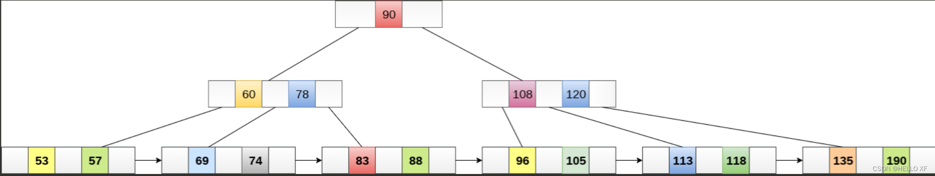2、B+树的叶子节点之间存在指针相连,而且是单链表