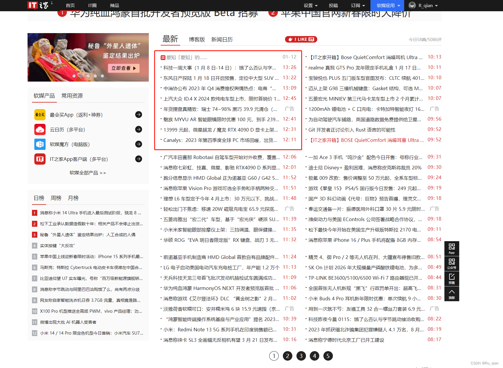 爬取IT之家新闻-3 最晚到23点34分左右,新闻基本属于24小时运行状态,因该是机器操作的,应该也是到处去爬取的然后发布到网站下。下面是用python写的爬取新闻,然后导出csv格式,这段代码并没有去获取新闻内容,只是获取了新闻的链接。如果使用excel打开乱码,点击数据-从文本/CSV加载,选择文件在编码这里选择utf-8,点击加载即可。可以看到it之家的新闻是按照日期进行排序的,看了一下这里可以获取到所有已发布的新闻。it之家的在一天之内的所有新闻都会在这个链接下。因此想要爬取一整天的新闻建议24点左右去爬取。