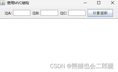 MVC结构 在下面的例10.15中,首先编写一个封装三角形的类(模型角色),然后编写一个窗口。要求窗口使用3个文本框和一个文本区为三角形对象中的数据提供视图,其中,3个文本框用来显示和更新三角形对象的3个边的长度;文本区对象用来显示三角形的面积。窗口中有一个监视器担任控制器角色,用户单击该按钮后,控制器用3个文本框中的数据更新三角形的3个边,然后让三角形返回面积,并将返回的面积显示在文本区中。控制层,事件处理类的实现。视图层,用户界面的实现。