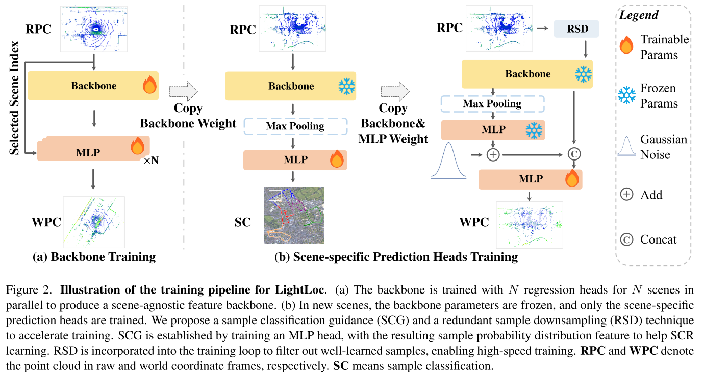 LightLoc是LiDAR定位领域的一项重要突破,它首次实现了在大规模户外场景中仅用1小时就能完成训练的目标。通过创新的SCG和RSD技术,论文优雅地解决了大覆盖区域和海量数据两大挑战,为基于回归的定位方法的实际应用铺平了道路。
